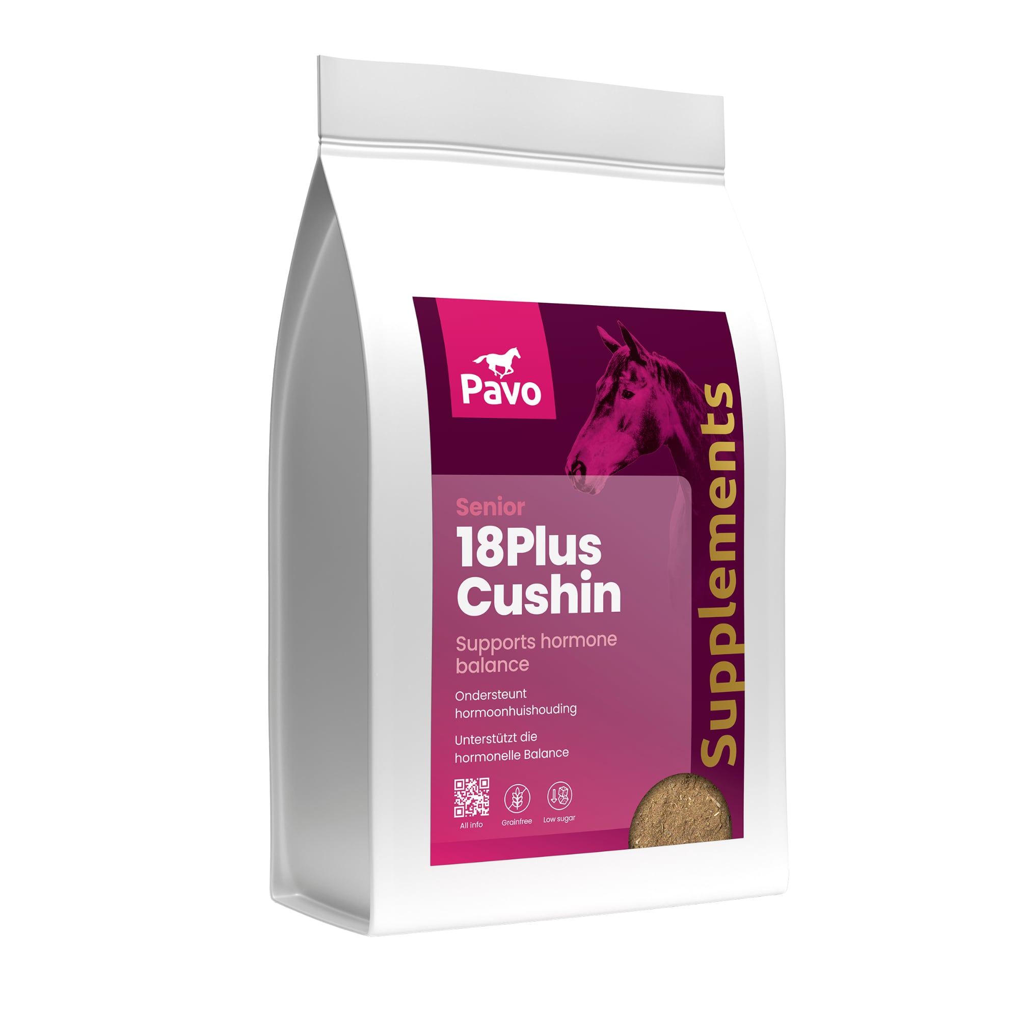 Pavo 18Plus Cushin är ett noggrant sammansatt fodertillskott för äldre hästar som behöver stöd för hormonbalans och immunförsvar. Produkten är särskilt utvecklad för att bidra till välmående hos hästar med åldersrelaterade besvär kopplade till hormonella förändringar och nedsatt motståndskraft.