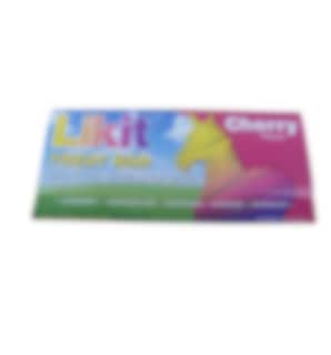 Hästgodis från Likit format som en chokladkaka med smak av körsbär.
