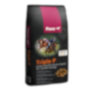 Triple P från Pavo är ett smakligt müsli som snabbt levererar energi och kraft och har tagits fram för hästar som behöver explosiv energi, exempelvis hopphästar och kapplöpningshästar.