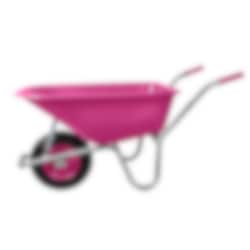 Skottkärra med plastkorg i en fin rosa färg. Skottkärran rymmer 100 liter.  Underredet är helsvetsat och korgen är gjord i återvinningsbar plast. Kärran är utrustad med stort kullagrat luftgummidäck.